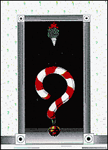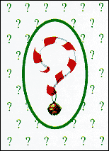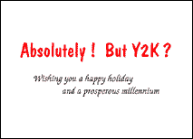 This 'collector's series' offering of the Y2K card has a rich, forest green background, featuring the candy cane exclamation and question mark, spelling out the final year of the last millennium - 1999! The age old question is presented - 'Will Santa Come This Year? The answer inside reveals: Absolutely! But Y2K? Wishing you a happy holiday and a prosperous millennium.